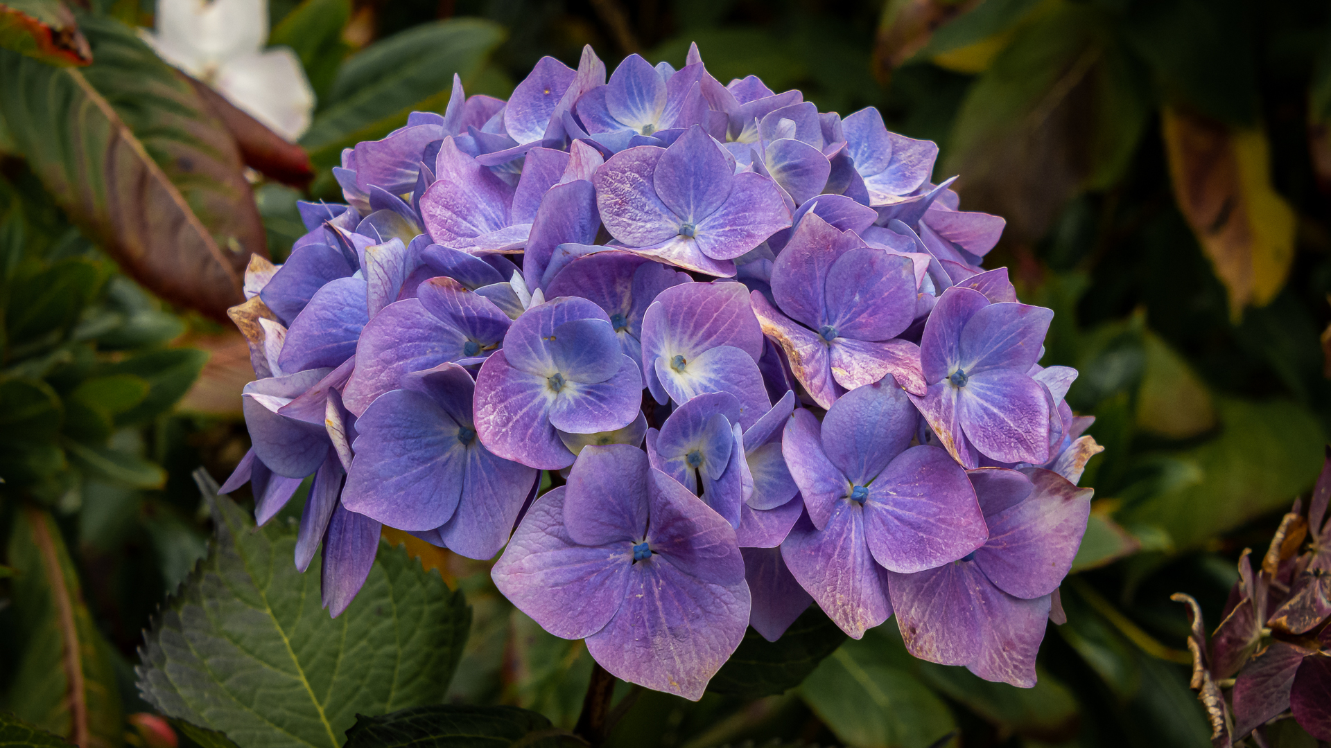 Flor de nominada científicamente como Hydrangea macrophylia. Es una especie fanerógaa de Hydrangea (hortensia) originaria de Japón. Esta bella flor fue fotografiada en la reserva natural de colibríes en la Calera, Colombia. [Foto: Giovanni Bermúdez; Fuente: inaturalist]